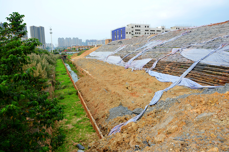 該項目目前已經完成土方開挖運輸7.5萬立方,土方回填壓實7萬立方,填土土工格柵鋪設12.6萬平方米,壓腳墻長度220米,截至今年4月份共完成總投資275萬元,預計2016年5月工程竣工驗收。