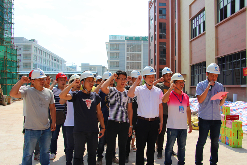 當(dāng)天,驕陽似火。綠港集團(tuán)黨委書記、董事長、總經(jīng)理龔國強(qiáng)莊重地給黨員們授予“黨員先鋒隊(duì)”紅旗,給青年突擊隊(duì)員們授予“青年突擊隊(duì)”紅旗,并提出了幾點(diǎn)要求:一是要緊緊圍繞項(xiàng)目建設(shè)開展突擊活動。全體黨員干部和青年同志要充分發(fā)揚(yáng)不怕吃苦、勇于負(fù)重,敢打硬仗、能打硬仗的優(yōu)良傳統(tǒng),切實(shí)發(fā)揮“黨員先鋒隊(duì)”、“青年突擊隊(duì)”在“急、難、險(xiǎn)、重”任務(wù)中的生力軍作用。二是要把項(xiàng)目建設(shè)與錘煉黨員意志相結(jié)合。黨員干部和青年同志們要充分發(fā)揮模范帶頭作用,深入項(xiàng)目一線,了解項(xiàng)目建設(shè)困難,想方設(shè)法協(xié)調(diào)解決。要在項(xiàng)目建設(shè)中增強(qiáng)本領(lǐng)、錘煉意志、增強(qiáng)黨性,更好的服務(wù)入?yún)^(qū)企業(yè)建設(shè)發(fā)展。三是要充分發(fā)揮“黨建帶團(tuán)建”作用。“黨員先鋒隊(duì)”要引導(dǎo)和指導(dǎo)好“青年突擊隊(duì)”開展好項(xiàng)目建設(shè),黨員干部與青年同志們要相互關(guān)心,密切配合,充分發(fā)揮整體功能和團(tuán)隊(duì)精神,確保瑞聲廠房項(xiàng)目能在625日完工交付9號廠房、725日完工交付313號廠房的任務(wù)目標(biāo)。